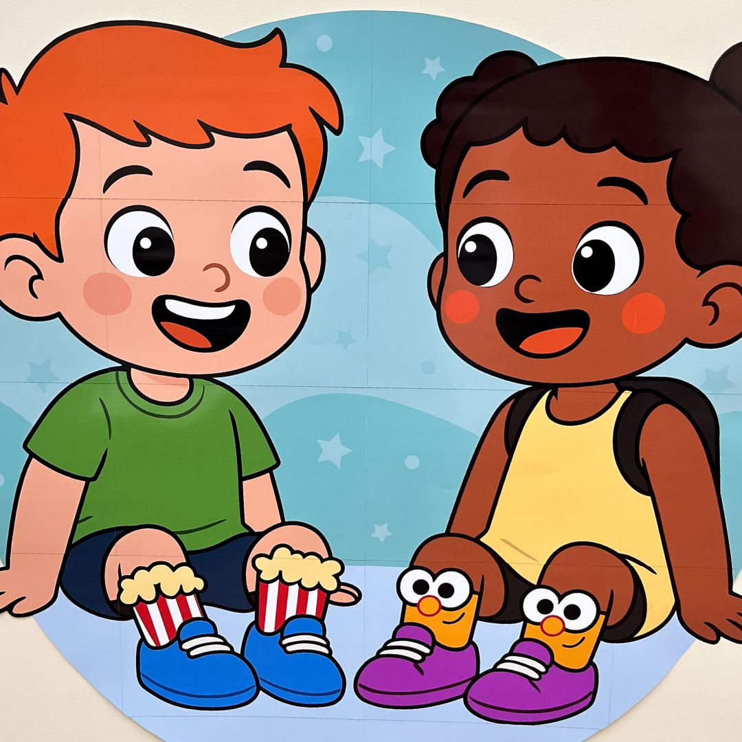 Com personagens simpáticos, meias engraçadas e uma arte encantadora, esse painel é perfeito para montar murais temáticos, decorar a sala de aula e criar espaços para fotos divertidas com os alunos.