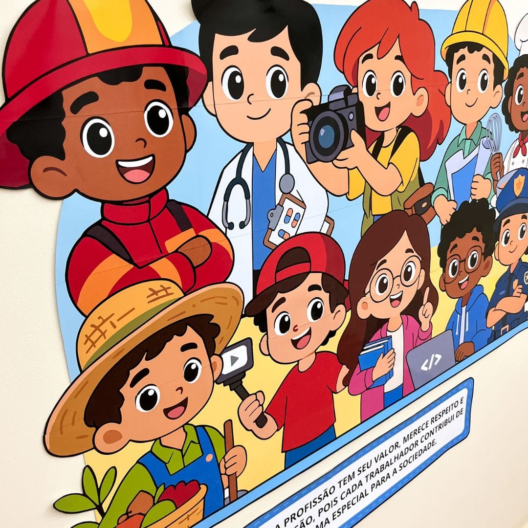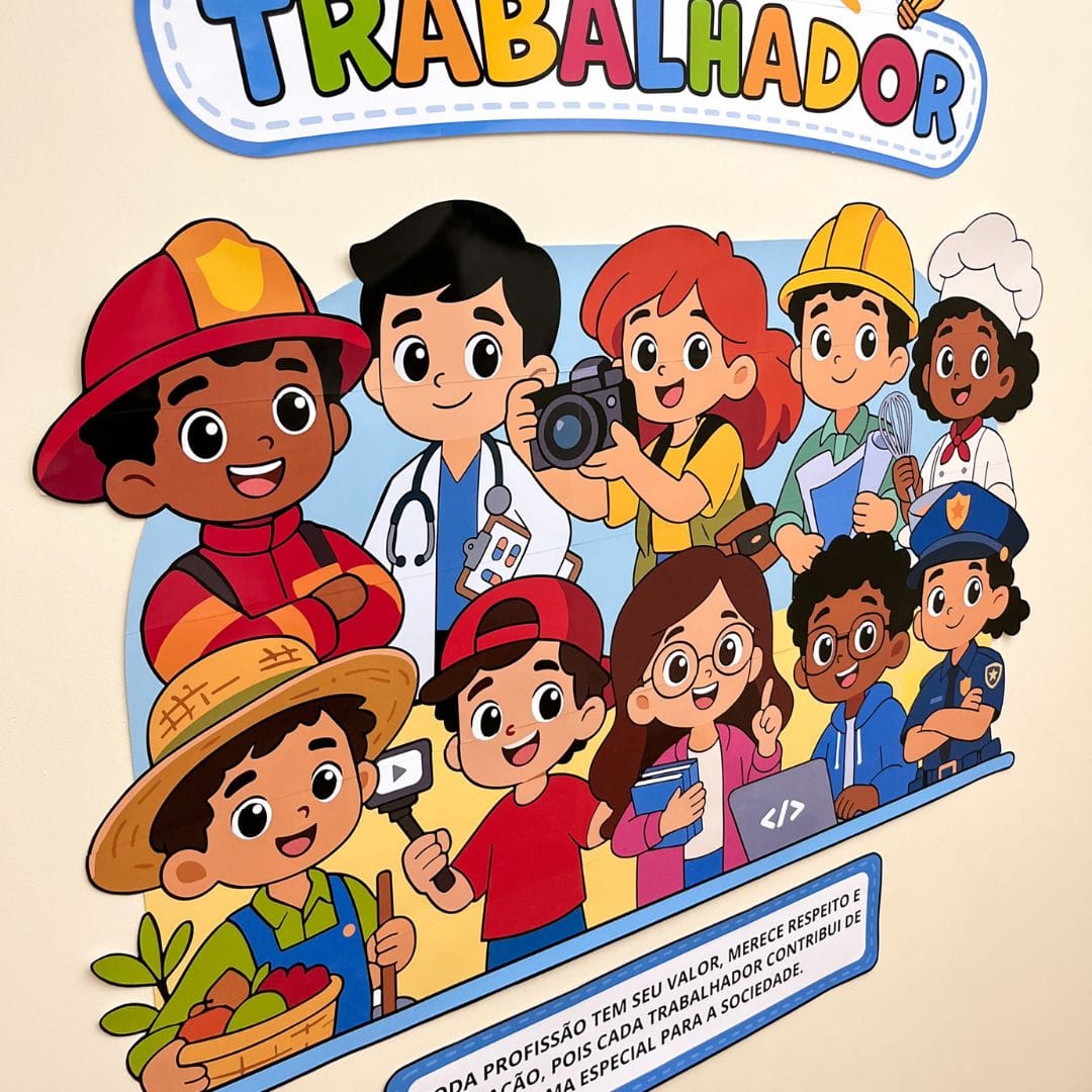 Além de decorar o ambiente escolar, o material também pode ser usado como ponto de partida para conversas, rodas de conversa e atividades sobre profissões, respeito, responsabilidade e cidadania