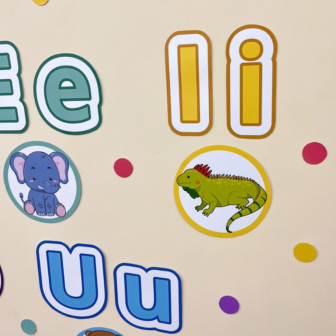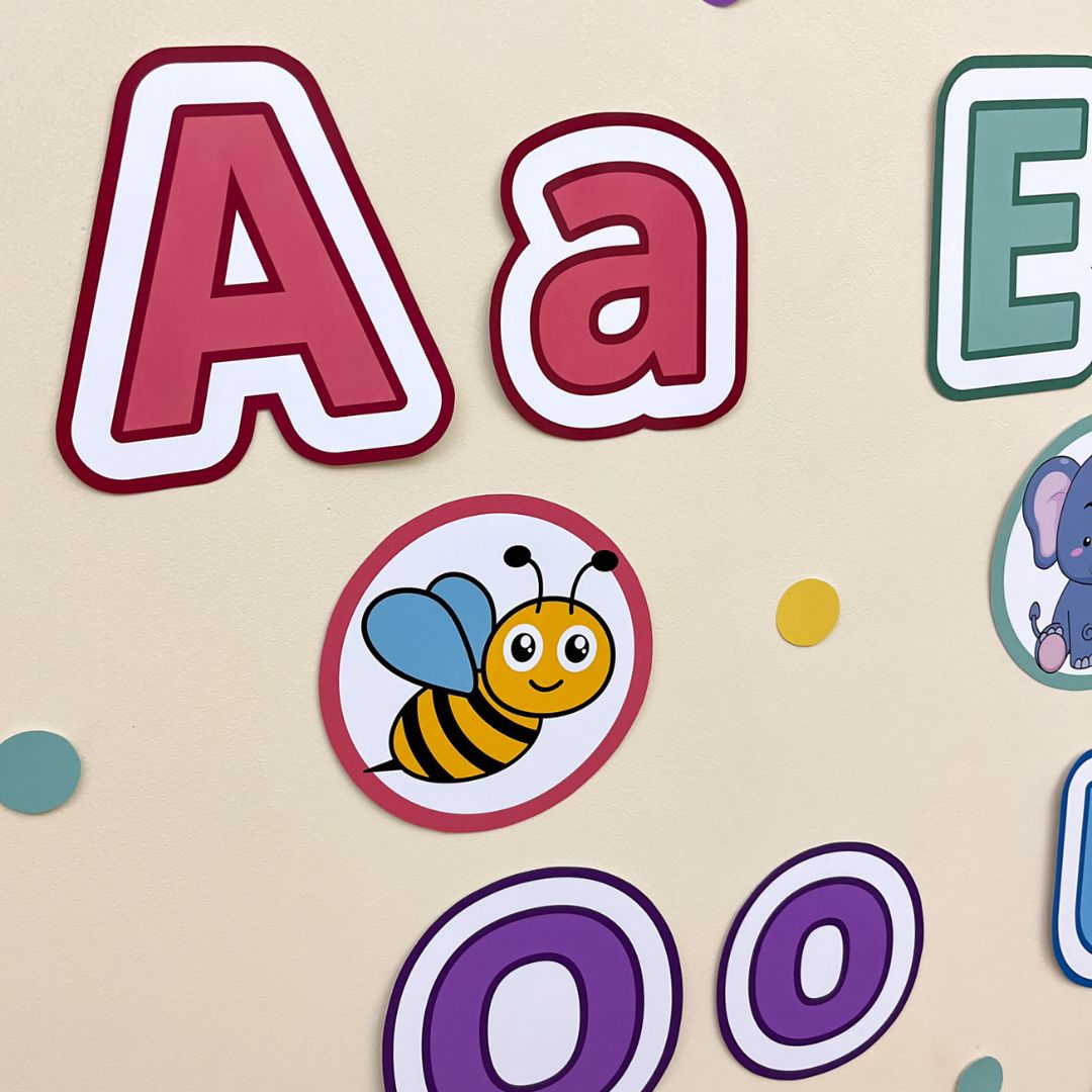 Transforme o ensino das vogais em uma atividade divertida e visual com o nosso Painel Vogais Ilustrado! Ideal para decorar salas de aula da Educação Infantil e turmas do início do Ensino Fundamental, este painel combina letras coloridas com imagens que ajudam na associação e memorização dos sons das vogais.